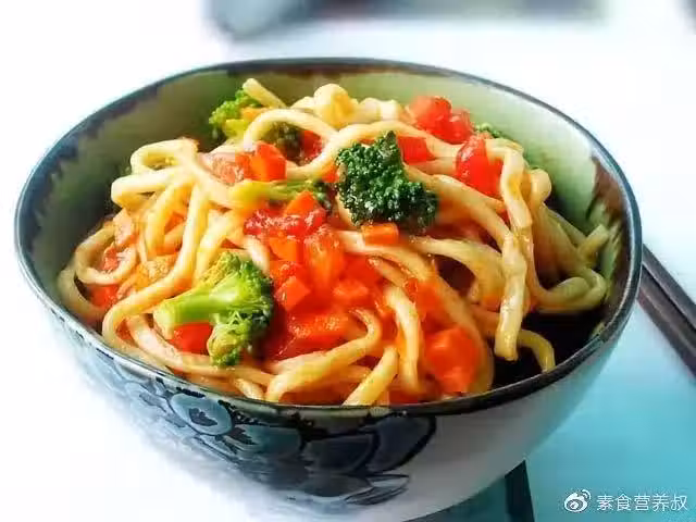 材料:麵條150克,番茄1個,西蘭花2小朵,胡蘿蔔1段,番茄醬1湯匙,素蚝油1湯匙,醬油1湯匙,醋半湯匙,鹽、油適量