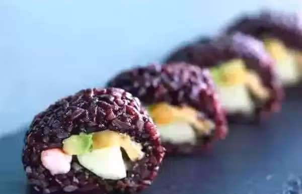 食材:黑米、大米、水、壽司醋、黃瓜、牛油果、芒果