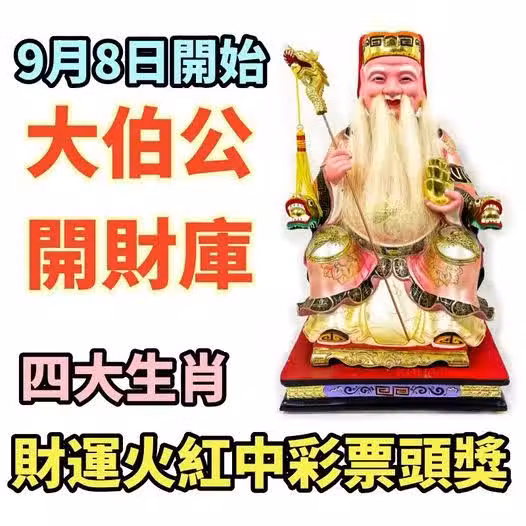 9月8日開始大伯公開財庫,四大生肖財運火紅中彩票頭獎