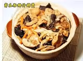 節瓜,紅蘿蔔,粉絲,生根,金針菜,雲耳,干冬菇,姜,水