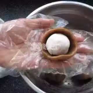 19、模具內刷一點點香油,放入月餅胚子