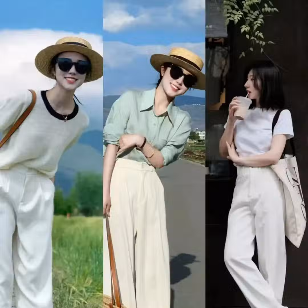 女人褲子不要總穿黑色,還可以試試百搭的白色褲裝,清爽又耐穿