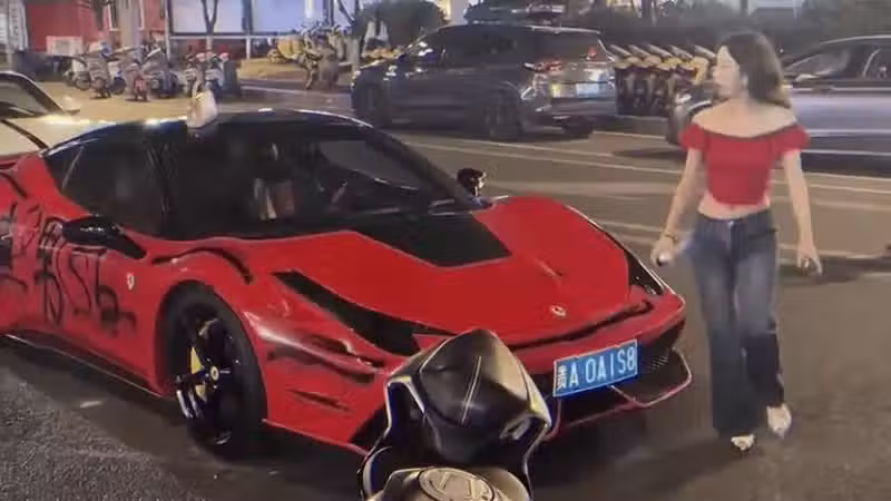 繼台灣超跑後換中國法拉利被噴「渣男」!網笑「長髮妹子有寫對」但下場慘了
