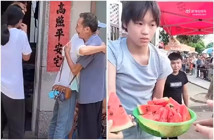 她一下車,就和爺爺奶奶大擁抱,還偷偷塞了大紅包,最後還切西瓜、哈密瓜給現場圍觀民眾,暖心舉動瞬間衝上熱搜。