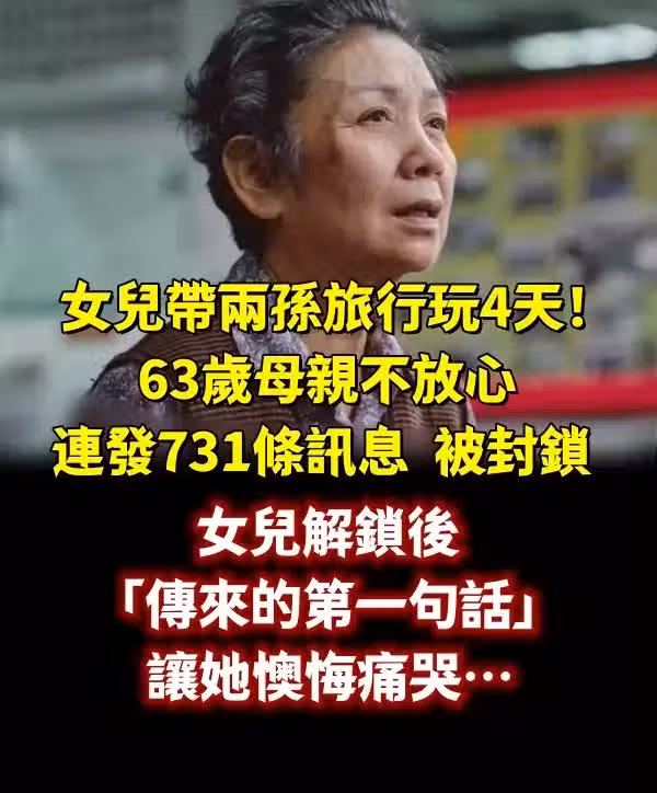 女兒帶兩孫旅行玩4天! 63歲母親不放心「連發731條訊息」被封鎖,女兒解鎖後「傳來的第一句話」讓她懊悔痛哭!