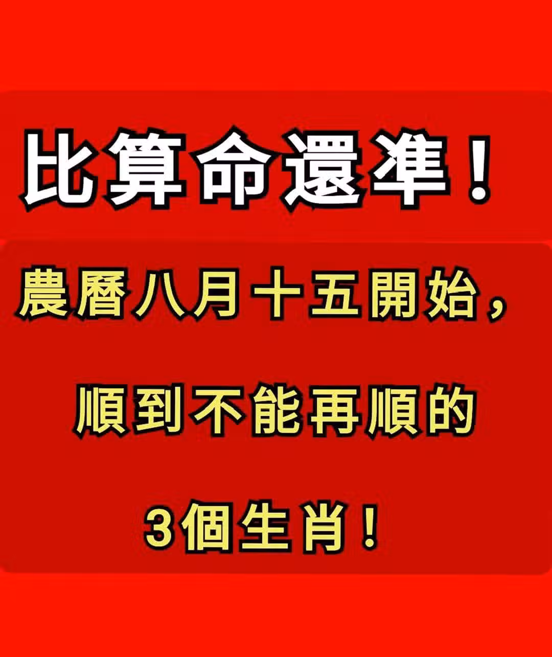 比算命還要凖!農曆八月十五開始,順到不能再順的3個生肖!