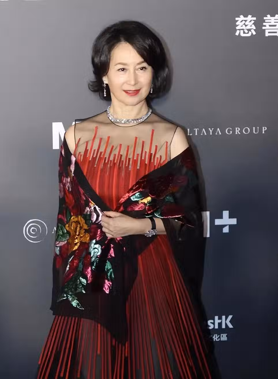 作為當天晚上的主角,賭王接班人何超瓊一身珠光寶氣,身穿紅色豎紋長裙,外披花紋披風,富貴之花盡顯。不得不說,何超瓊沒有「微調」的臉十分耐看,老了還是那麼漂亮。