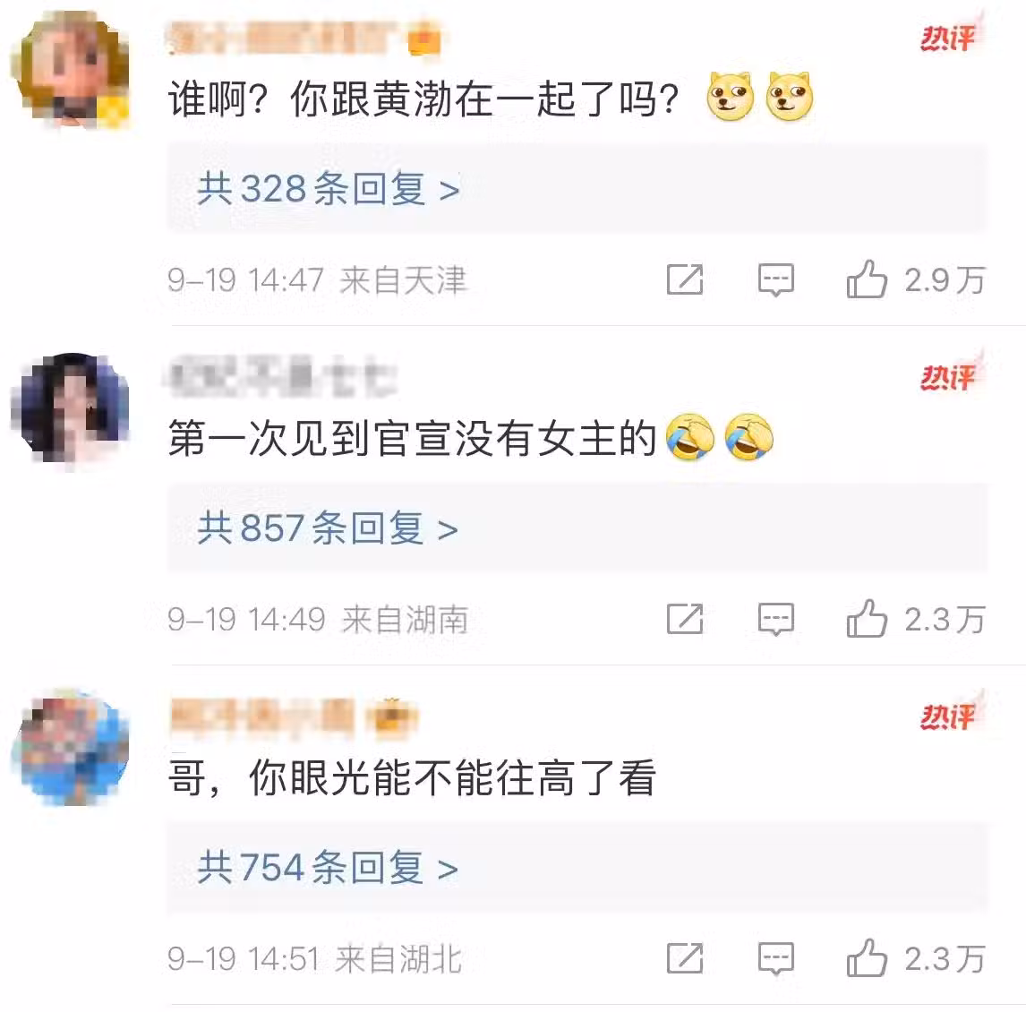 而在其中一條評論下面,有人猜測了黃教主不艾特女主角的原因。