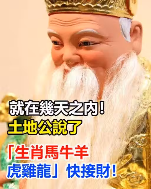 就在幾天之內!土地公說了「生肖馬牛羊虎雞龍」快接財!福分已經降下來!