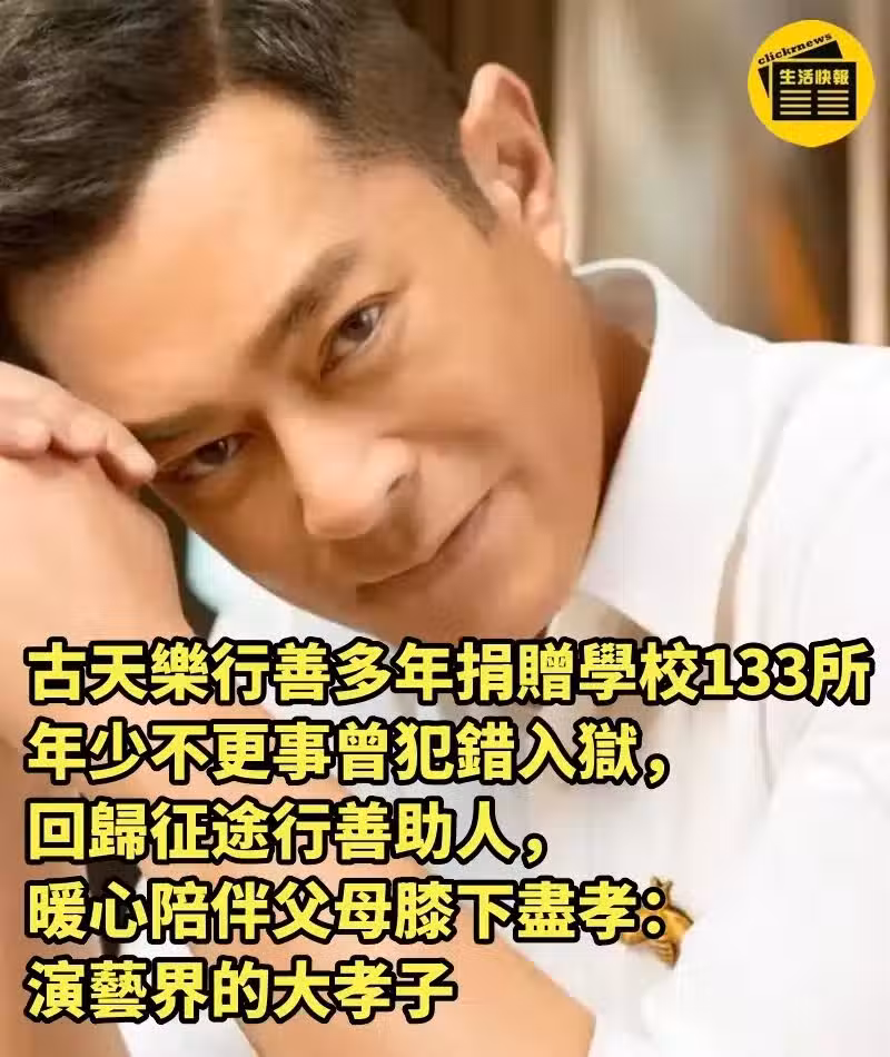 古天樂行善多年捐贈學校133所,年少不更事曾犯錯入獄,回歸征途行善助人,暖心陪伴父母膝下盡孝:演藝界的大孝子