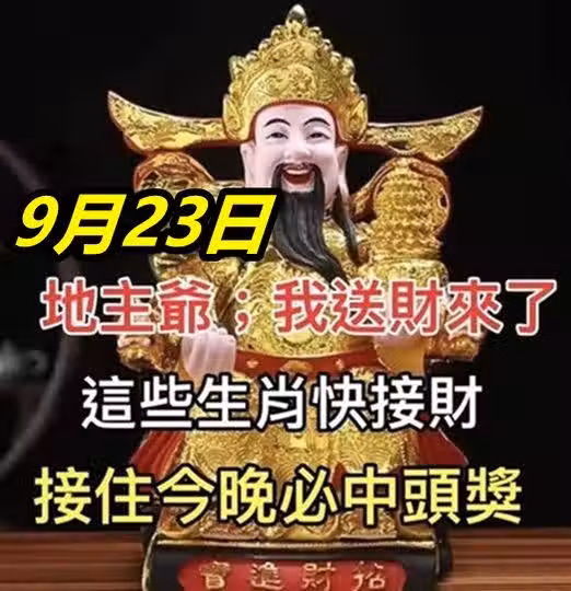 今天9月23日,地主爺說:我送橫財來了!這些生肖,今晚必中頭獎!