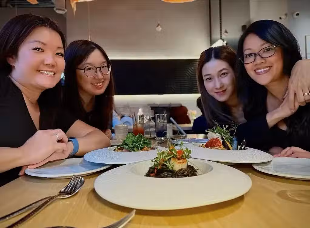 鍾嘉欣與小學同學聚會!燦笑重回少女時代,眾人穿著打扮驚人相似