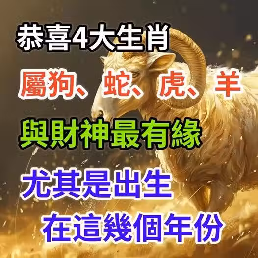恭喜生肖【屬狗、屬蛇、屬虎、屬羊人❗】 與財神最有緣,「尤其是出生在這幾個年份」的
