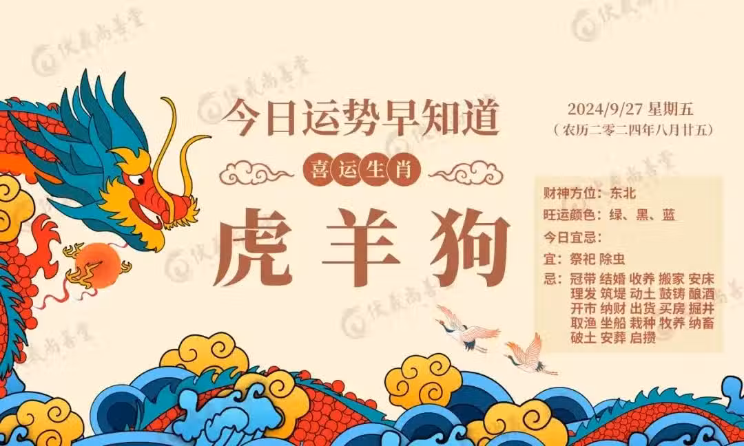9月27日運勢指南(喜運生肖:虎 羊 狗)