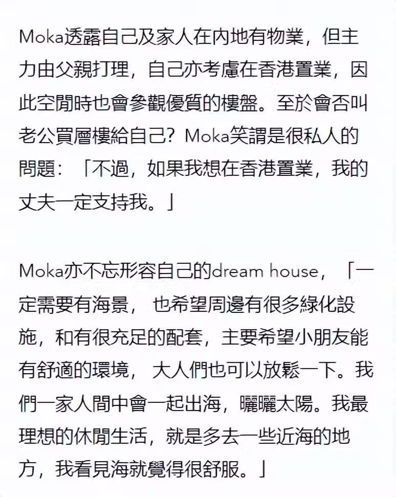 方媛不僅cue郭富城支持自己買房,還提出自己的要求,一定要有海景,周圍有很大綠化和充足的配套,一家人有空就可以一起出海,曬曬太陽。
