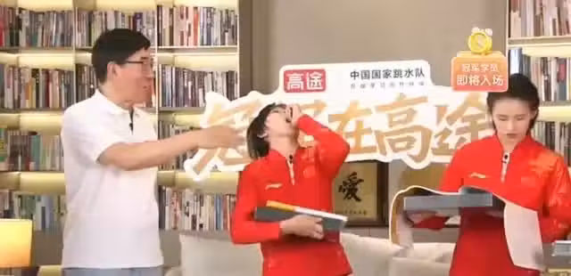 在直播過程中,全紅嬋還主動拿起零食,分享給了主持人和隊友陳芋汐。