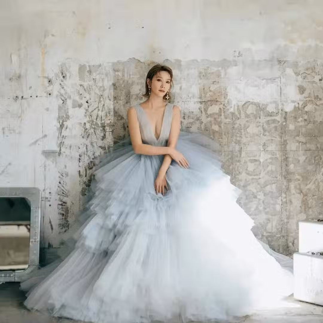 每個造型都非常性感,大曬香肩及長腿。其中一個超低胸婚紗造型,展露其傲人上圍,被指「禾稈蓋珍珠」。