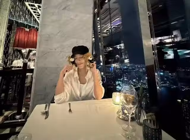 照片中,楊茜堯只是化著淡妝、戴著棒球帽,穿著簡單舒適的白色襯衫,並沒有精心打包。