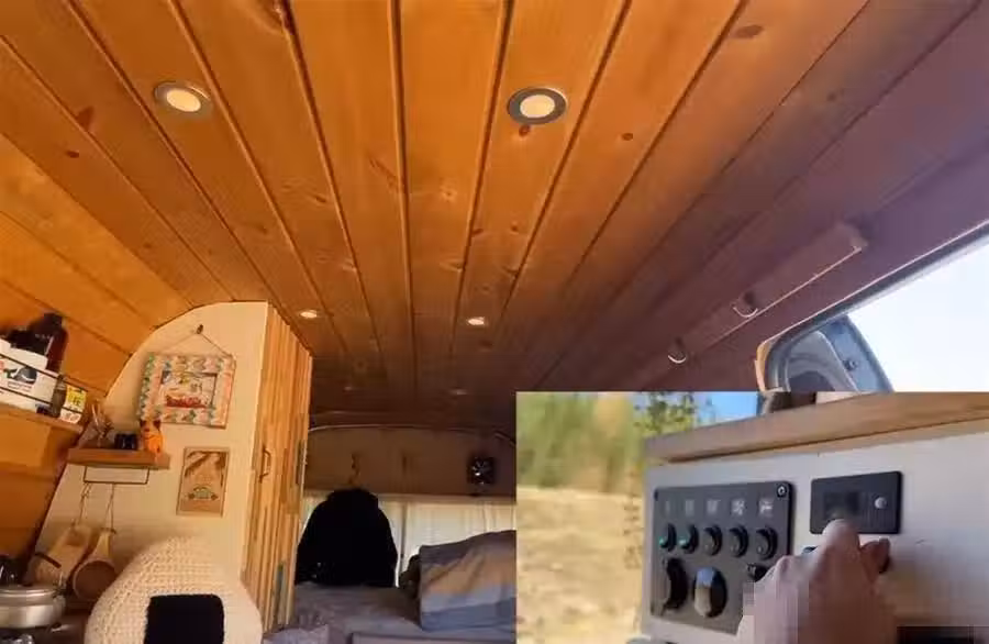 車裡的廚房,占據了很大一片空間,下廚烹飪用具一應俱全。