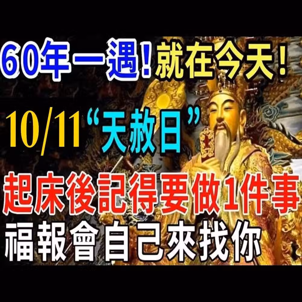 60年一遇!就在10月11號「天赦日」,起床後記得要做一件事,福報會自己來找你!讓你旺到年尾!
