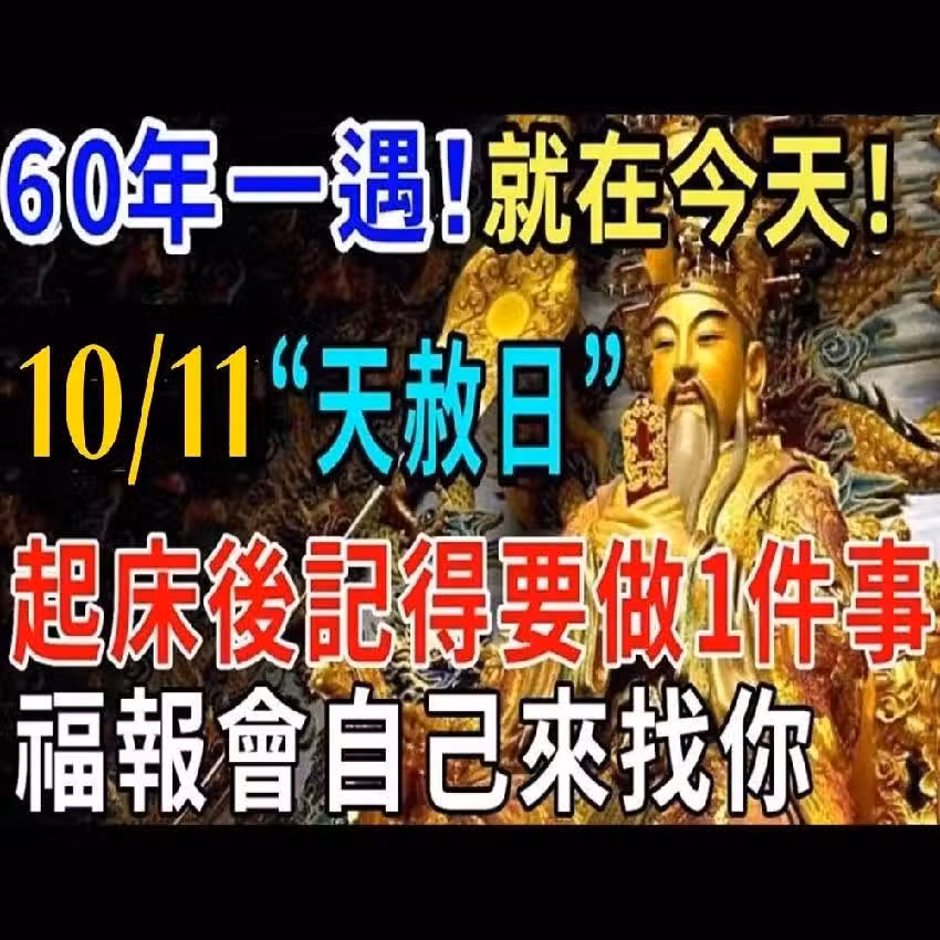 60年一遇!就在10月11號「天赦日」,起床後記得要做一件事,福報會自己來找上你!讓你旺到年尾!