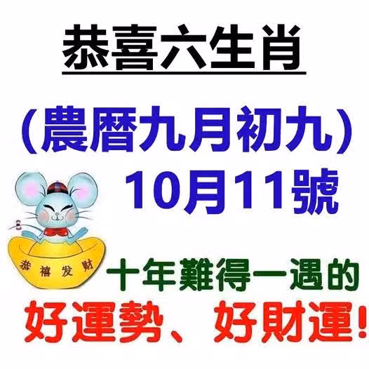 10月11號(農暦九月初九)十年難得一遇的好運勢,好財運的生肖
