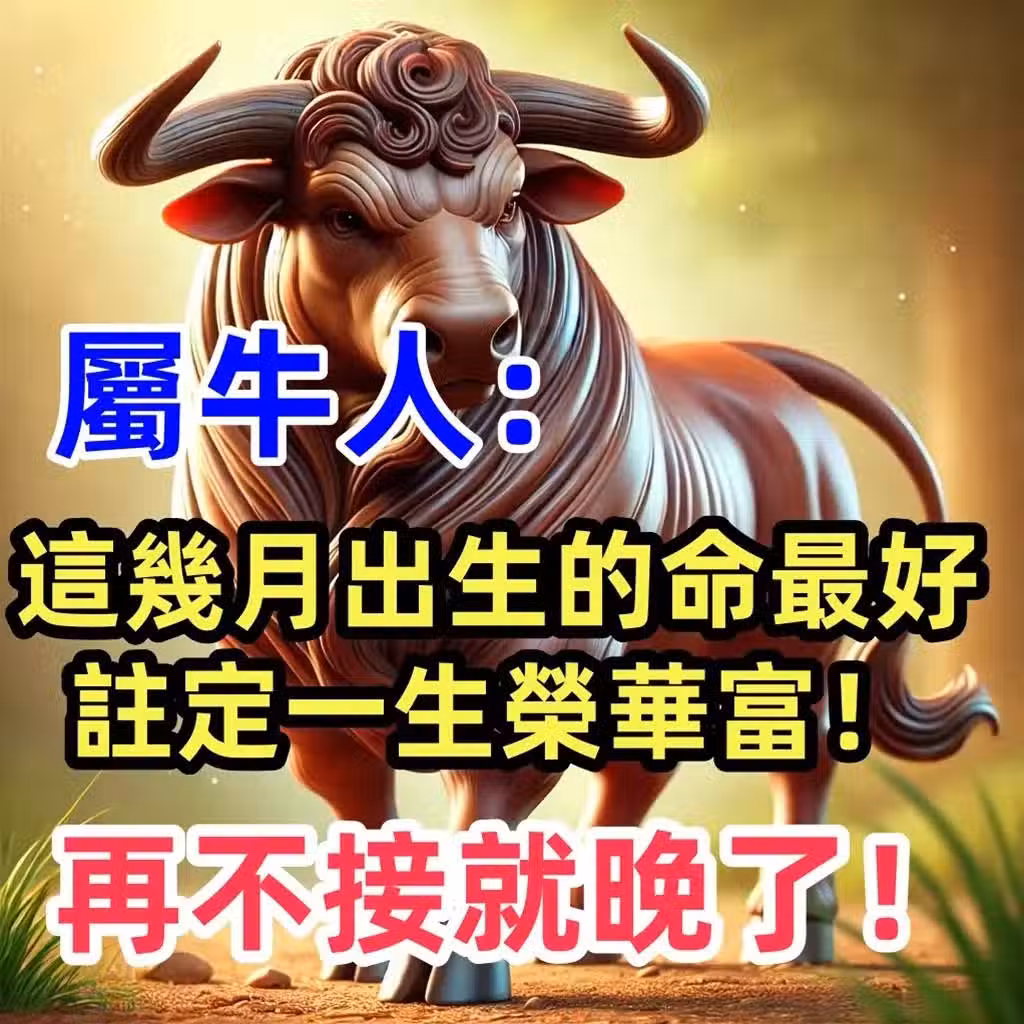 嘿,朋友們!你們聽說過生肖牛的人如果在某個特定月份出世,就會一輩子運氣好到爆棚,老了更是福如東海,家庭樂趣多多嗎?