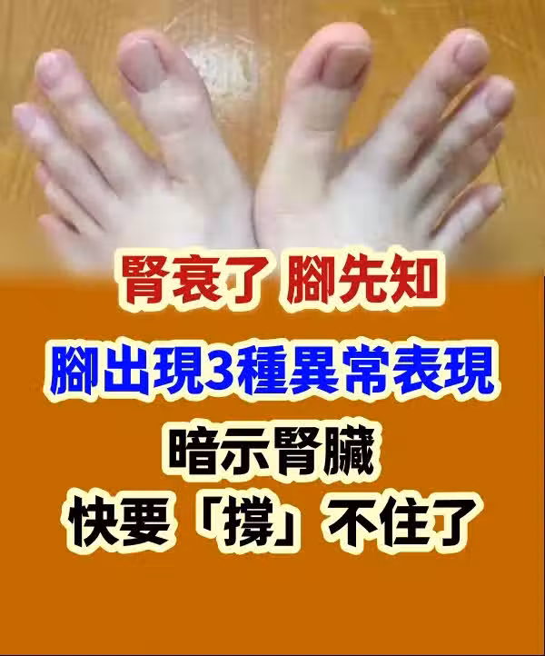 腎衰了,腳先知!腳出現3種異常表現,暗示腎臟快要「撐」不住了!
