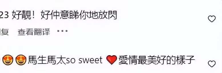 朋友們看到他們夫妻一起出國旅行,紛紛留言:好中意你們放閃,馬生馬太好幸福,太甜啦,愛情美好的樣子。666