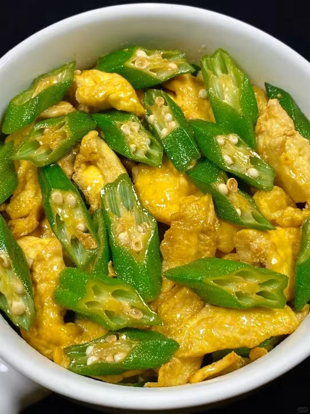 (秋葵一斤,雞蛋5個,水一勺,鹽適量,油適量)