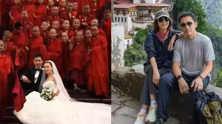 62歲影帝梁朝偉與女星劉嘉玲2008年在「世界最幸福國度」 不丹舉辦婚禮,日前夫妻倆重回不丹,相隔16年重溫當年的甜蜜回憶,這一次雖然是登山輕裝,沒有當年的華麗婚紗,但是相守多年仍鶼鰈情深,更令人羨慕。