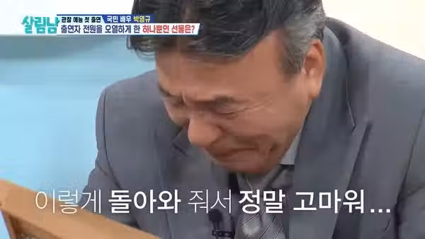 他收到照片的當下,看著與模擬兒子一同合照,終於在鏡頭前痛哭失聲,「真的長得很像,這是我想像中的樣子,這是我收過最棒的禮物了」,令人無比動容。