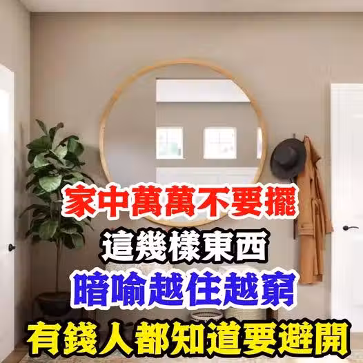 家居風水是非常重要的,不過也是很多人都會忽略的一個地方,家裡的物品在擺放的時候,是與風水息息相關的,不過如果風水犯了禁忌,那我們的運勢就會受到不好的影響,生活會越來越不順,財運也會跟著變弱。 家中萬萬不要擺這幾樣東西,暗喻越住越窮,有錢人一看就明白了。