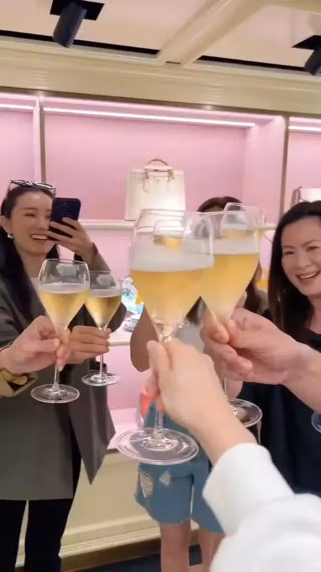 Gucci的飾櫃前掛了生日旗,他們在店內高舉香檳祝賀,隨後有職員唱著生日歌並拿著粉紅色生日蛋糕入來,而袁偉豪更化身咖啡師為一班好友沖咖啡。