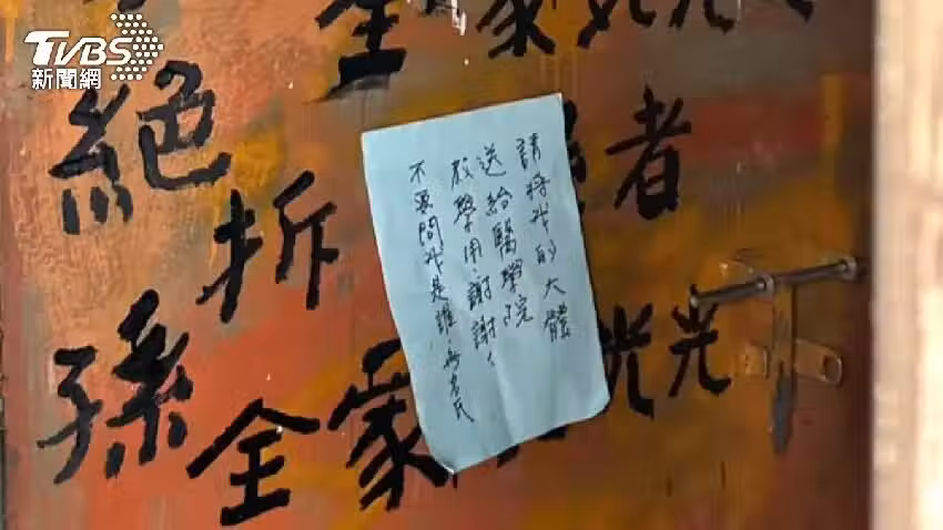 根據TVBS報導,李姓屋主因不滿眷村遭拆,選擇了激烈手段離世,除了在家門口親筆寫上「拆我屋者全家必死」、「會絕子絕孫」等詛咒字眼,還另外留了一張藍色紙條,上頭寫著「請將我的大體送給醫學院教學用,謝謝~不要問我是誰,無名氏」,與毒咒成了鮮明對比,仍然心存善念,希望將軀體回饋給社會。