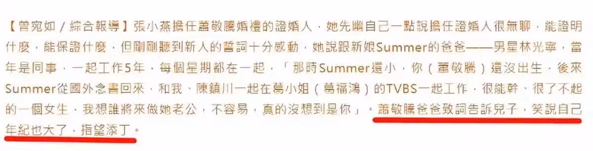 蕭敬騰的父親急切地希望他們能早日添丁,這種心情可以理解。