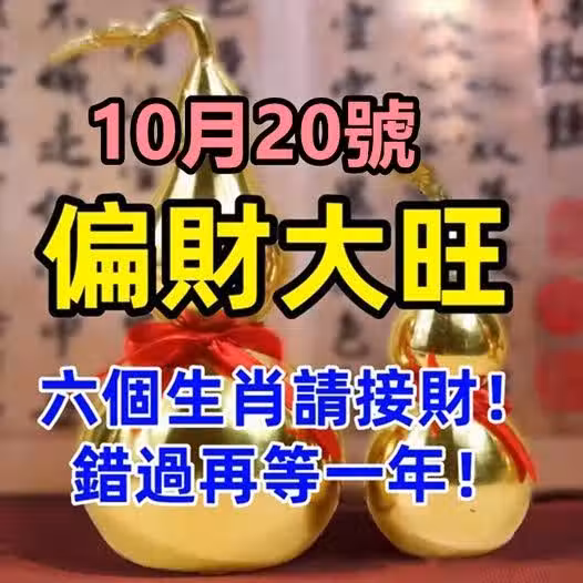 10月20號偏財大旺,六個生肖請接財!錯過了再等一年!