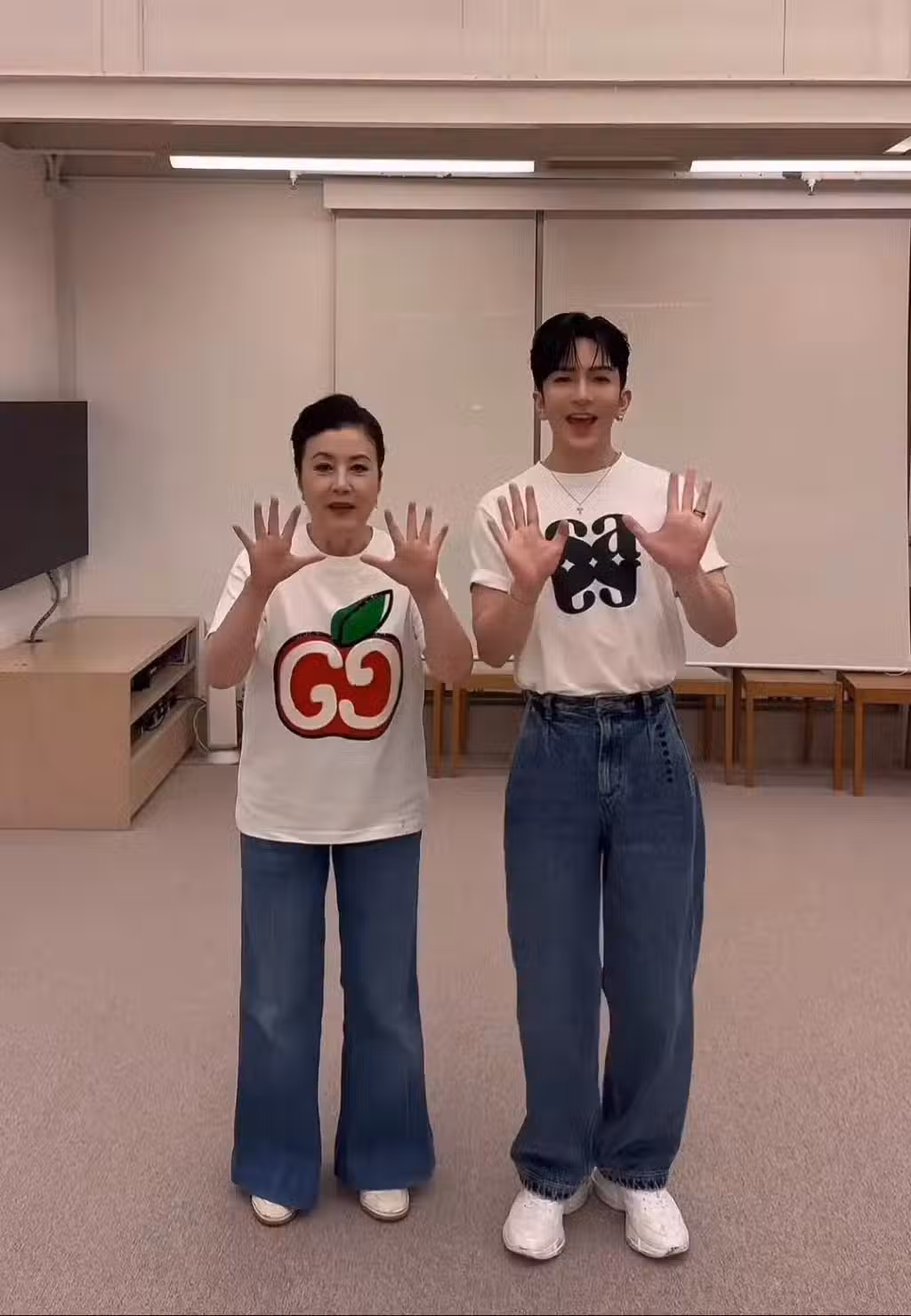 77歲汪明荃與盧瀚霆熱舞!身穿白色T恤配牛仔褲,顯年輕