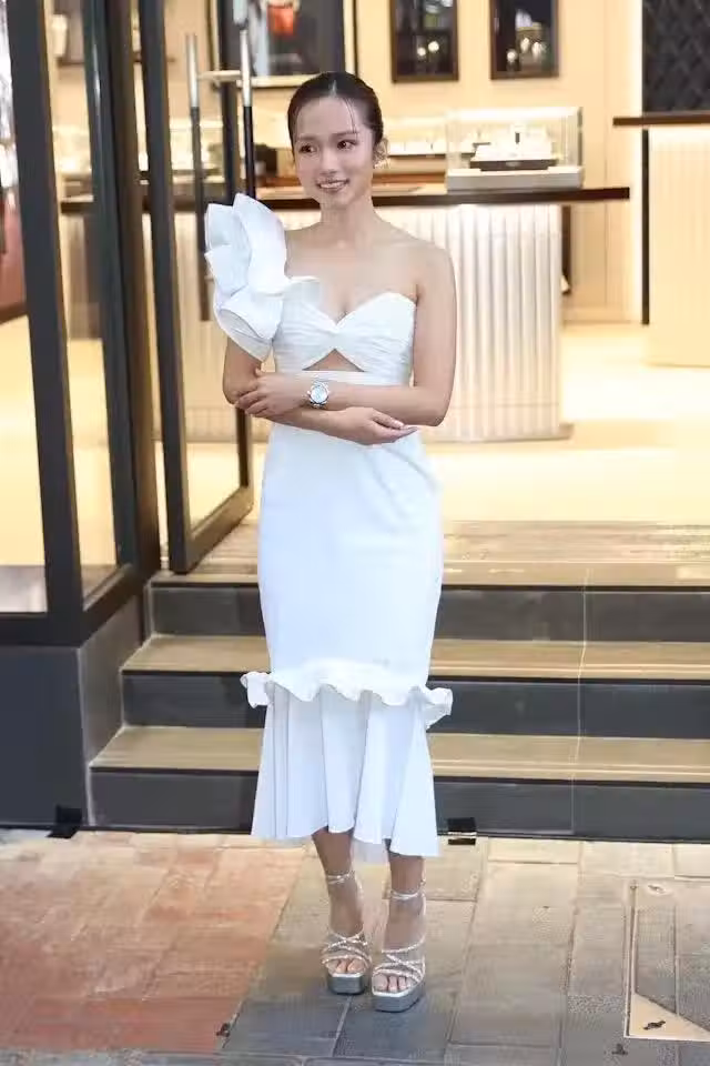 2018年港姐亞軍兼獲得「最上鏡小姐」的鄧卓殷日前出席活動。只見她身穿一襲白色露肩長裙,手上戴著白色鑲鑽手錶,並配以閃亮亮的淺色高跟鞋,看上去清純可人。可能因為生活壓力過大,鄧卓殷顯得特別清瘦,看上去一副氣血不足的樣子。