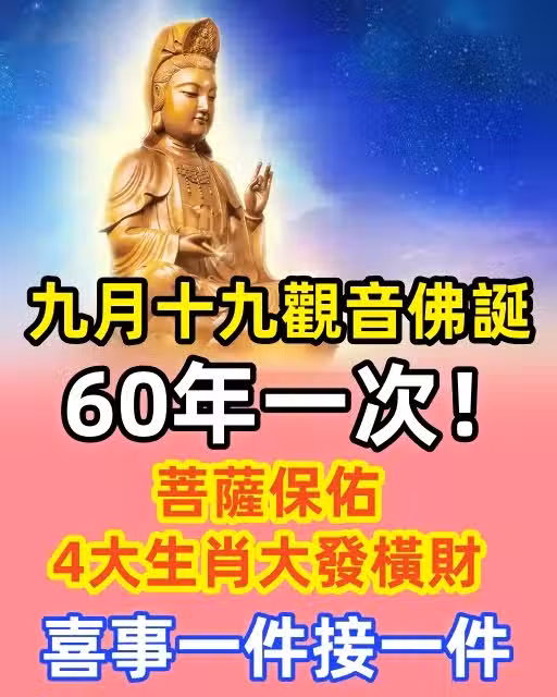 九月十九觀音佛誕,60年一次!觀音菩薩顯靈,4生肖受菩薩庇佑,喜事一件接一件,大發橫財獎,再不接就晚了!
