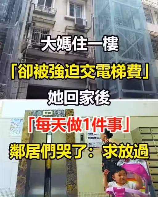 大媽住一樓「被強迫交電梯費 」回家後「每天做1件事」鄰居們哭了:求放過!