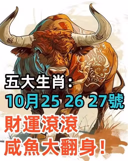 五大生肖:10月25 26 27號財運滾滾,鹹魚大翻身!