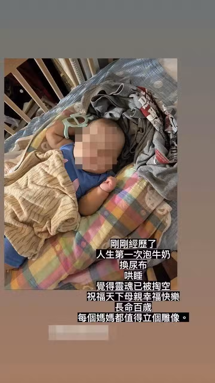 然而好不容易撇清了秘婚的謠言,曹雅雯卻突然曬出一張孩子的照片,只見照片中的孩子躺在一張嬰兒床上,接著曹雅雯於文中提到:「剛剛經歷了人生第一次泡牛奶和換尿布,還要哄睡孩子,覺得靈魂已被掏空」。