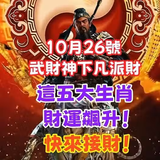 10月26號,武財神下凡派財,這五大生肖財運飆升!快來接財!