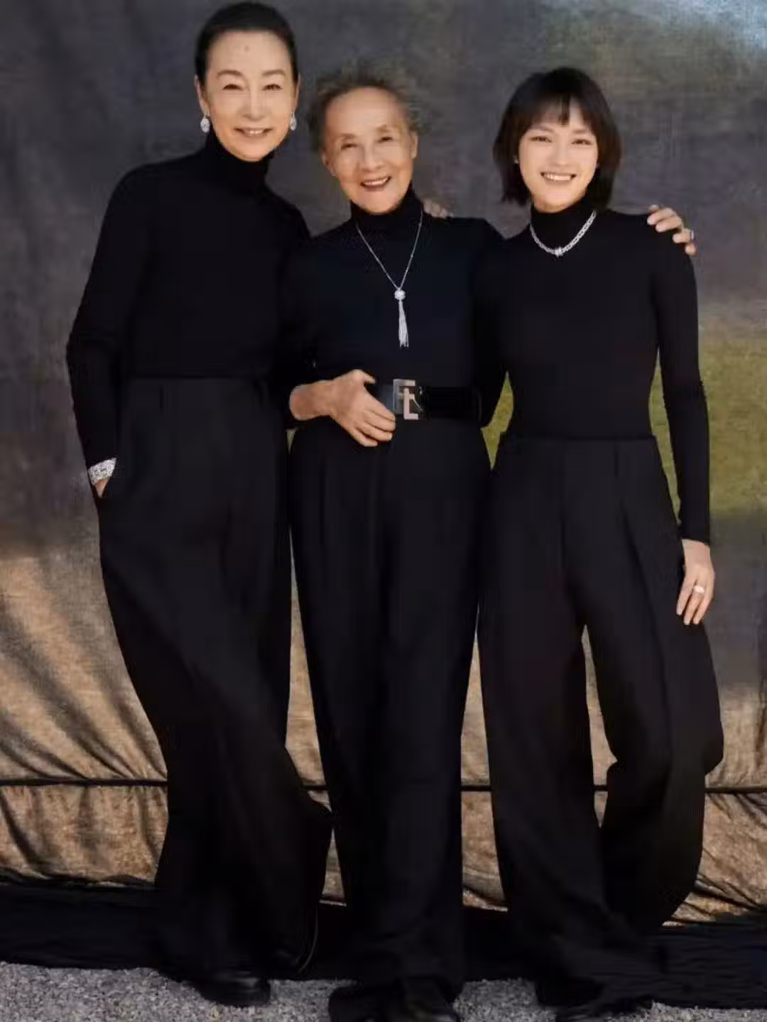 選取高腰款式闊腿西褲,搭配黑色高領打底衫,將沉穩大氣進行到底,還能讓老年人擁有高挑身材!