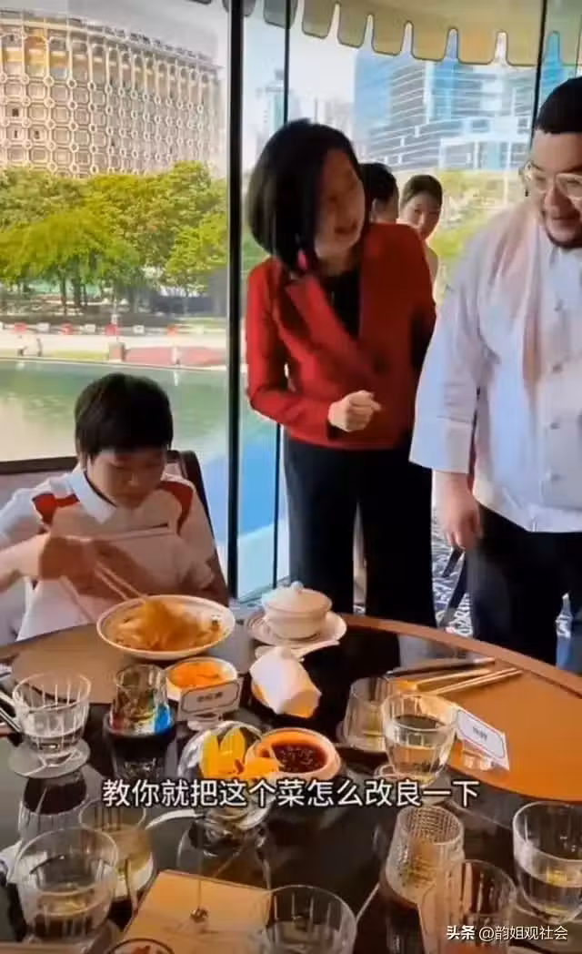 全紅嬋在澳門永利皇宮吃飯,,董事長和行政總廚與全紅嬋合影留念!