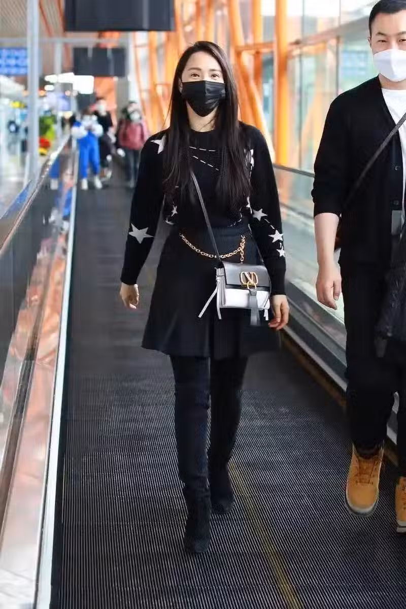除了款式選擇和材質選擇之外,大家還可以嘗試在搭配方式上入手。就像是伊能靜這樣,出人意料的將「褲子」和「裙子」結合到一起,穿出一種意想不到的穿搭效果。