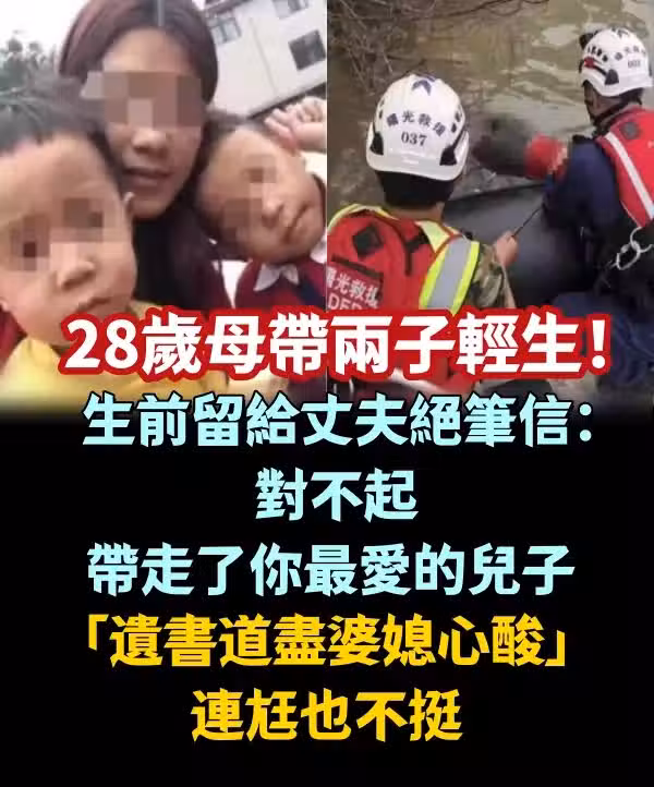 28歲母帶兩子輕.生!生前留給丈夫絕筆信:「對不起,帶走了你最愛的兒子…」 「遺書道盡婆媳心酸」連尪也不挺~