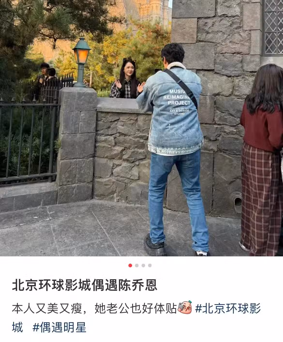 10月29日,有網友曬出在環球影城偶遇陳喬恩和老公Alan的照片,並大讚「本人又美又瘦,她老公也好體貼」。