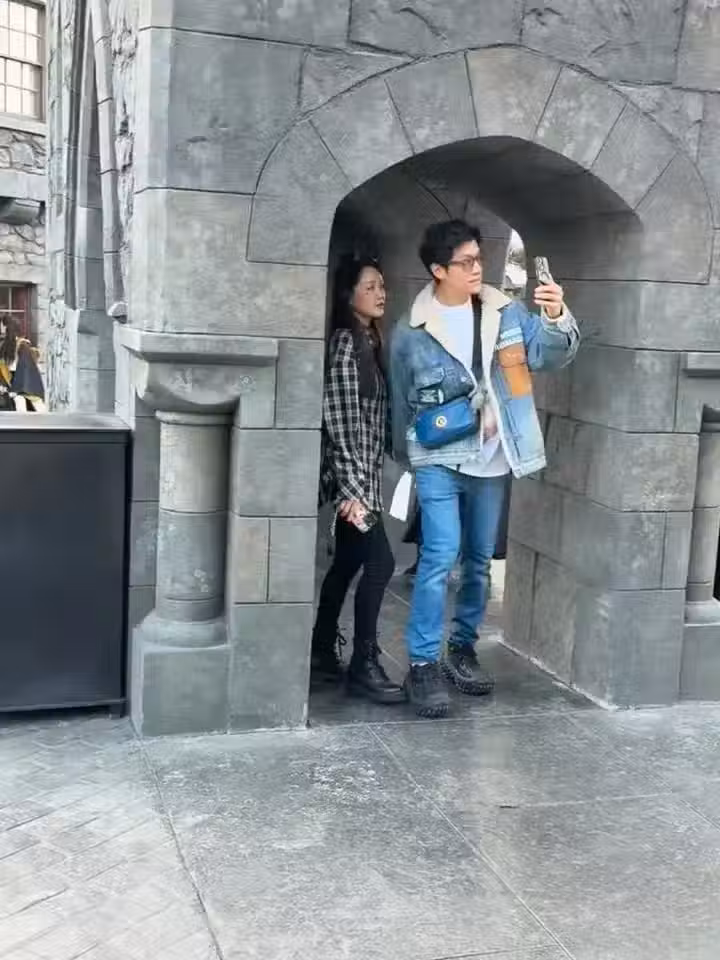 陳喬恩和老公游環球影城,Alan負責當攝影師,給老婆拍照好努力